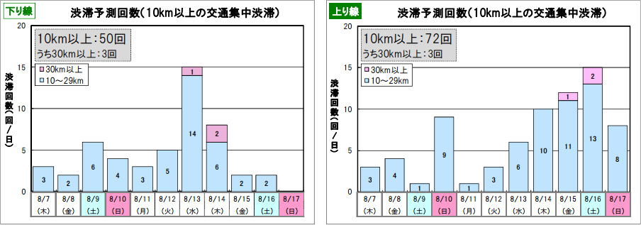 ~ 渋滞のピークは、下り線で8月13日、上り線で8月16日と予測 ~