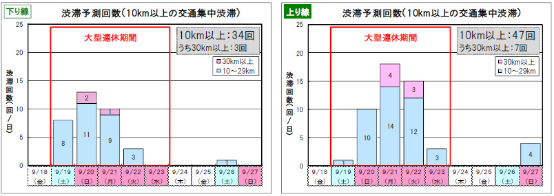 ~ 渋滞のピークは、下り線で9月20(日)~21日(月)、上り線で9月21日(月)~22日(火)と予測 ~