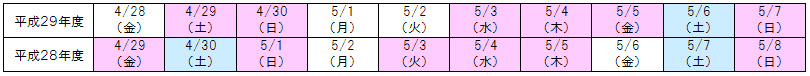 [平成28年度:H28.4.29(金)~H28.5.8(日)]