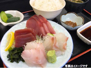 - おすすめメニューは、新鮮な旬の刺身を盛り合わせた「刺身定食」など