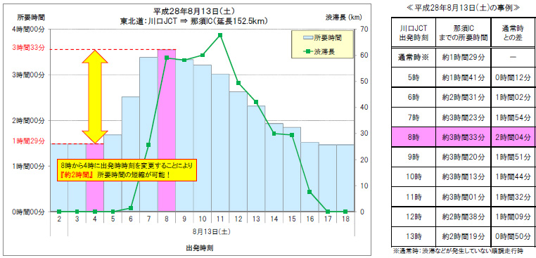 - 渋滞予測内容をもとに出発日・時間帯をずらすなど、渋滞を避けたご利用を