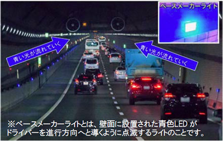 NEXCO東日本では、このような速度低下しやすい場所の壁面にペースメーカーライトを設置しており、速度低下予防に大きな効果を発揮しています。しかし、ゴールデンウィーク期間のように特に交通が集中する期間では、上下線で長い渋滞が発生すると予測しています。渋滞が予測されている時間帯を避けてご利用いただきますよう、ご協力をお願いします。
