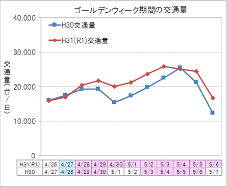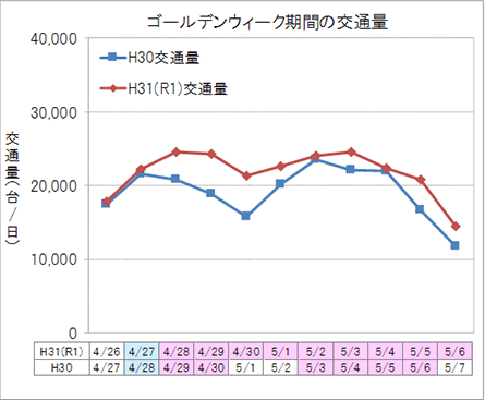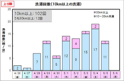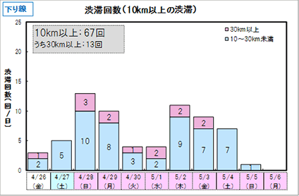 - 渋滞のピークは下り線が4月28日(日)、上り線が5月4日(土)でした。