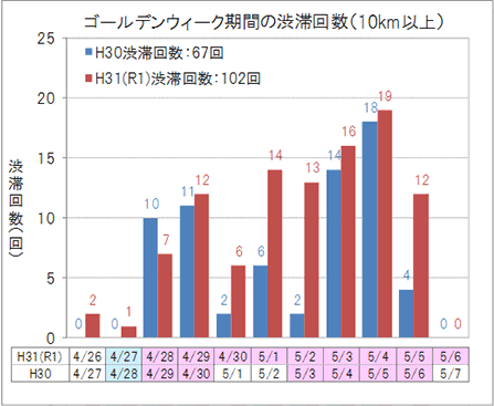 - 30km以上の渋滞回数は、25回となり昨年と比較し13回増加しました。