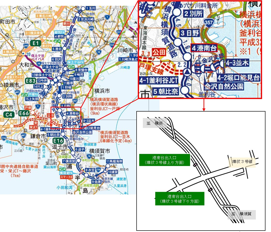 E16横浜横須賀道路 港南台料金所 位置図