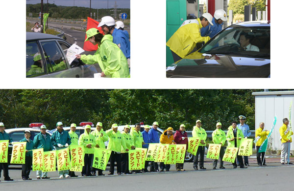 各実施場所において、高速道路のご利用のお客さまに、「2011春~秋版 北海道ドライブマップ」やマナーティグッズ(シャープペン・ウエットティッシュなど)を手渡し、交通安全を呼びかけます。また、沿道では登り旗などを使った交通安全啓発を実施します。
