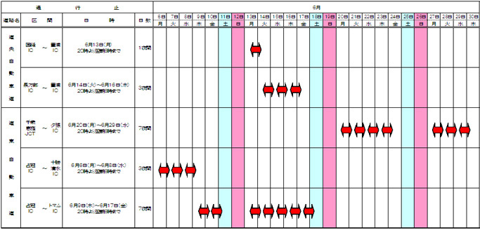 なお、悪天候の場合は順延しますので、交通規制状況についてはNEXCO東日本お客さまセンター、(財)日本道路交通情報センター、ハイウェイテレホン、情報板などでご確認ください。