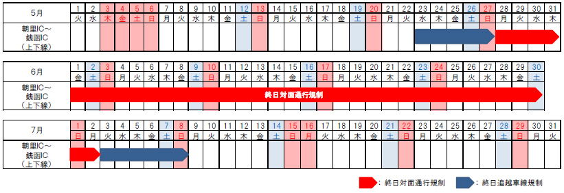 終日追越車線規制期間 平成30年5月23日(水)~平成30年7月8日(日) (47日間)
