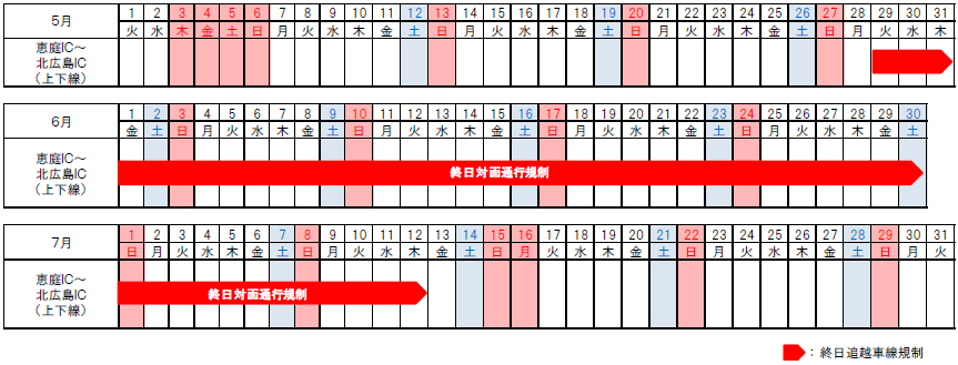 【E5】道央自動車道 恵庭IC⇔北広島IC間(両方向)橋りょうリニューアル工事に伴う終日対面通行規制のお知らせ