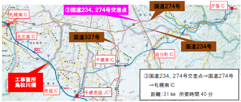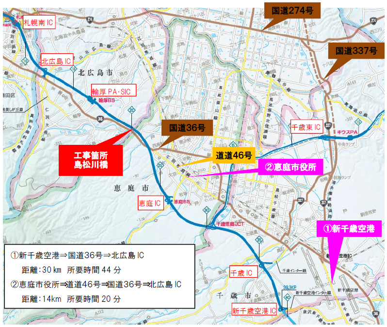 (1)千歳市・恵庭市周辺から北広島IC方面、千歳市周辺から札幌南IC方面への一般道路