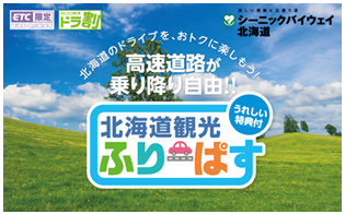 北海道内の高速道路が定額で乗り降り自由となるドラ割「北海道観光ふりーぱす」を販売中です。(ETC車限定)