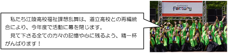 【2】「江陵(こうりょう)高校 福祉科 想乱舞(そうらんぶ)」(幕別町)による演舞 ☆今回初!