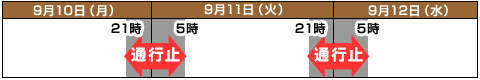 平成19年9月10日(月) 毎夜21時から翌朝5時まで(8時間)の2夜間
