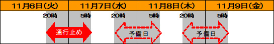 • 荒天の場合、夜間閉鎖の実施判断は、実施当日の夕方16時に行います。
