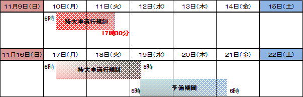 平成26年11月10日(月)から11日(火) 17時30分で規制解除しました