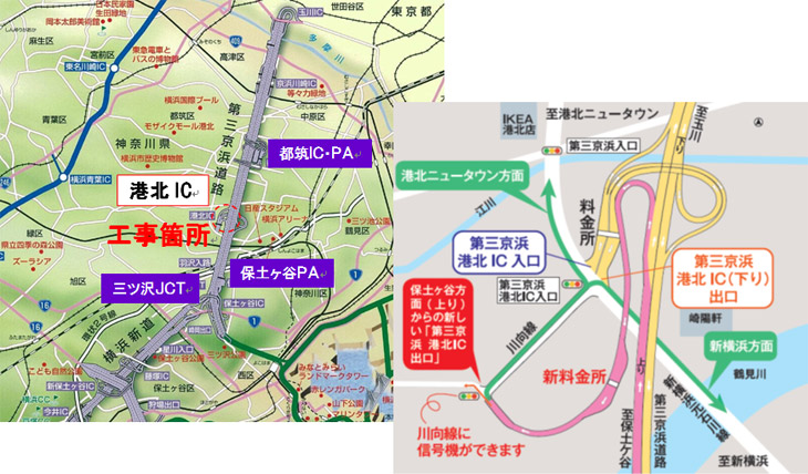 第三京浜道路 港北IC出口位置変更のお知らせ