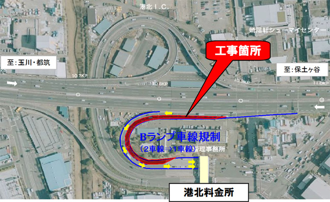 今回、港北ICにおける保土ヶ谷方面からの出口変更の工事に伴い、交通規制を実施します。