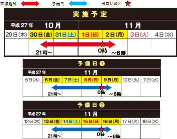 ※荒天の場合は工事及び港北IC出口位置の変更を予備日に順延します。