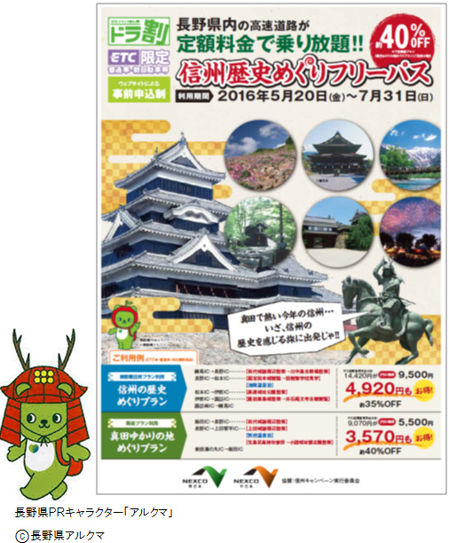 NEXCO東日本・NEXCO中日本連携企画「信州歴史めぐりフリーパス」が5月20日からスタート