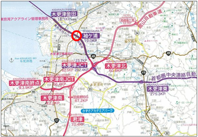 ※国道409号を木更津方面へ走行し、木更津金田第一ICから流入してください。