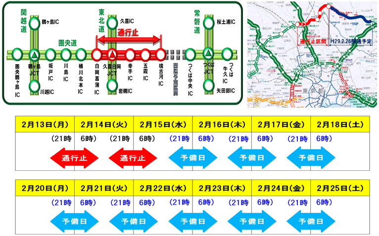 ※白岡菖蒲IC~久喜白岡JCT(外回り)は、工事進捗により開放する場合があります。