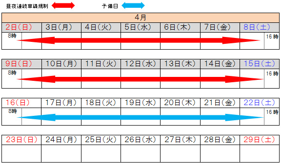 (平成29年4月8日(土) 16時から4月9日(日)8時までは工事を行いません) - 予備日