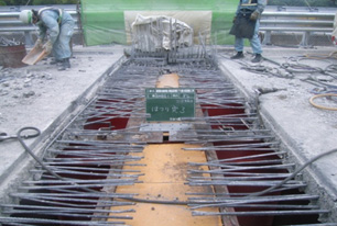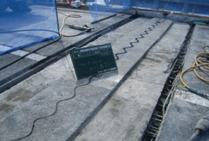 この工事では,橋りょうのつなぎ目の伸縮装置を撤去し、つなぎ目を無くす工事を行います。