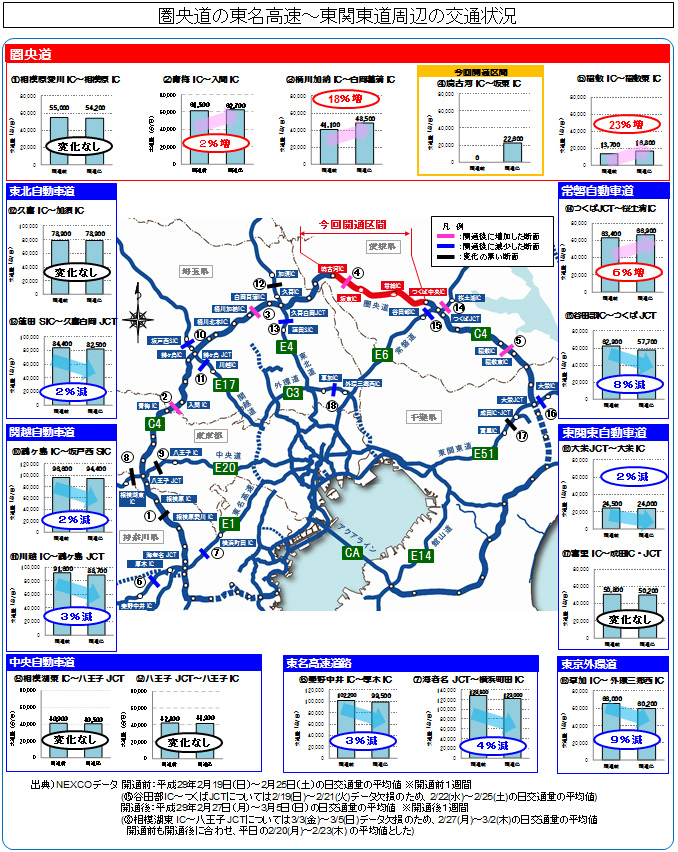 • 3 交通量:NEXCOデータ(平成29年2月27日~平成29年3月5日の平均値(最小~最大値))