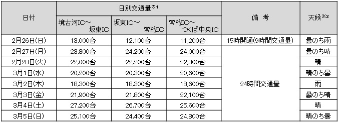 【圏央道 境古河IC~つくば中央IC間の開通後1週間の交通量】