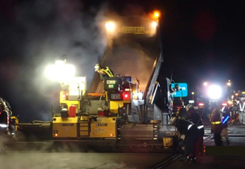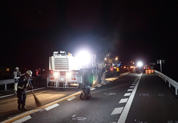 工事を実施するにあたり、お客さまへの影響を極力少なくするため、交通量が少ない平日の夜間に通行止めを行い、点在する補修箇所を集中的かつ効率的に行います。