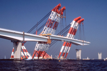 海底下のトンネルをはじめ、海上に、海ほたるPAや風の塔(人工島)、橋梁を構築した技術等を紹介します。