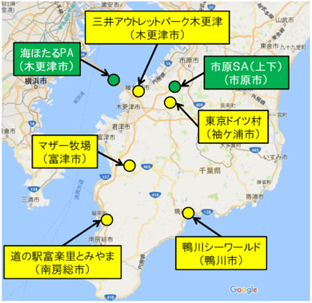 海ほたるPA、市原サービスエリア(上り線・下り線)、三井アウトレットパーク木更津(木更津市)、ドイツ村(袖ヶ浦市)、マザー牧場(富津市)、鴨川シーワールド(鴨川市)、道の駅富楽里とみやま(南房総市) - プレゼント賞品: