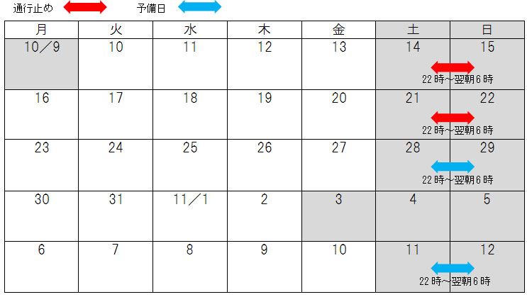 ~10月14日(土)・10月21日(土)各日夜22時から翌朝6時まで