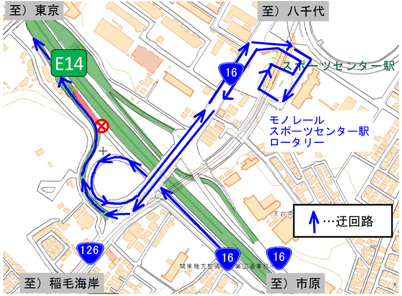 1. Eランプ(国道126号、国道16号八千代方面からの入口)閉鎖時