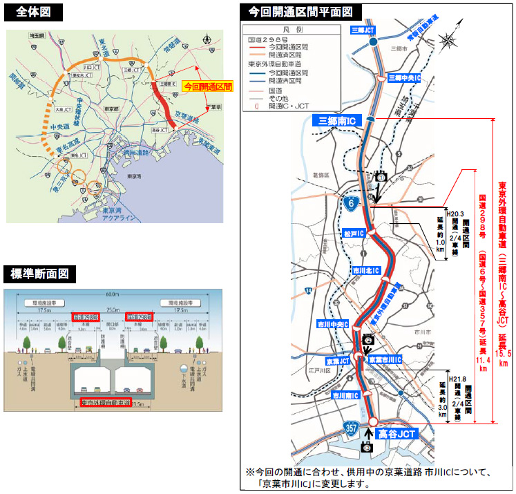 - 東京外環自動車道:三郷南IC~高谷JCT