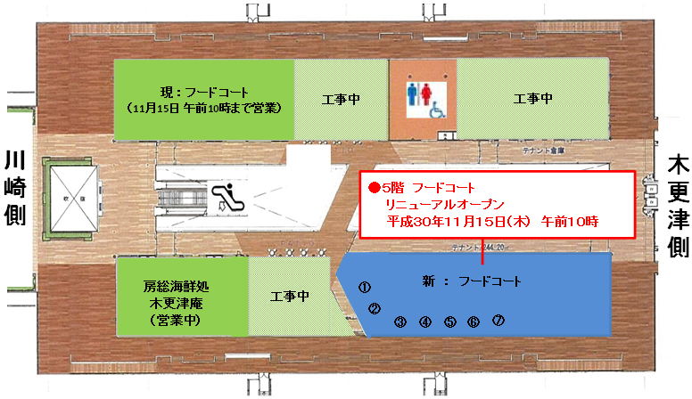 NEXCO東日本東京湾アクアライン管理事務所(千葉県木更津市)及び東京湾横断道路株式会社(東京都品川区)では、CA東京湾アクアライン(以下「アクアライン」)海ほたるパーキングエリア(以下「海ほたるPA」)の店舗の一部及び老朽化したトイレ等施設のリニューアル工事を行っていますが、平成30年11月15日(木)午前10時に新フードコート(海ほたるPA5階)をオープンいたします。