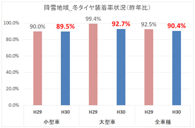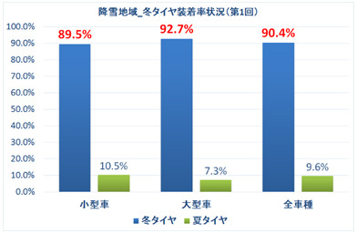 - 降雪地域では、小型車89.5%・大型車92.7%の装着率。