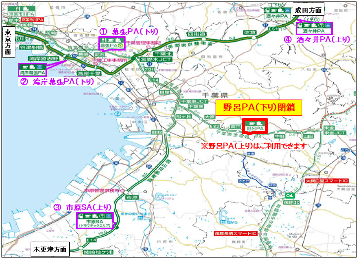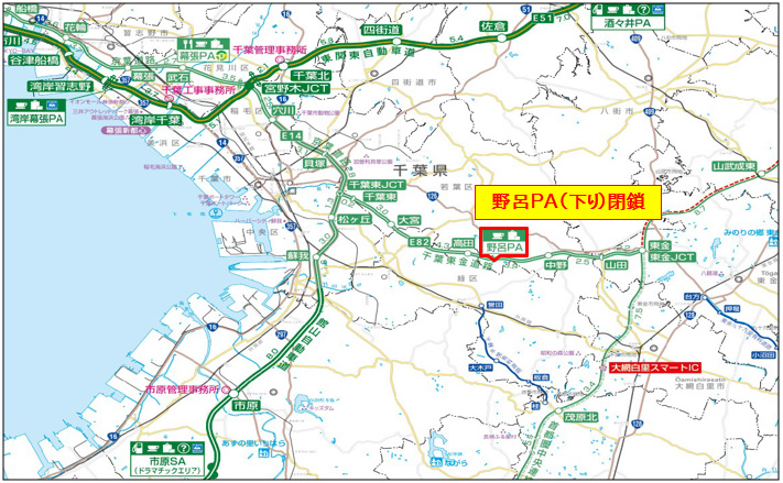 (1)閉鎖箇所:東金道 野呂PA(下り)