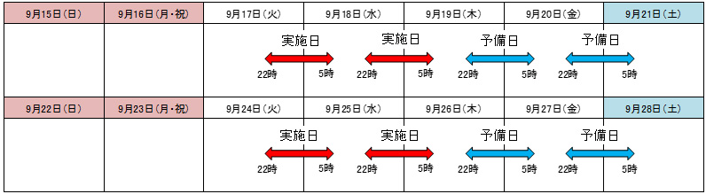 • 工事の実施判断は、当日の16時にTwitterなどでお知らせします。