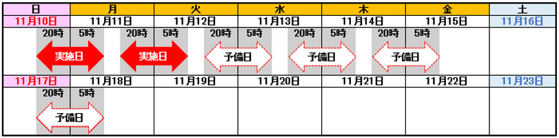 - 予備日:令和元年11月12日(火)~14日(木)・17日(日)