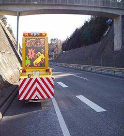 事故や故障でやむを得ず車外に出る場合は、後方の車にハザードや発炎筒、停止表示器材で合図をし、ガードレールの外側など安全な場所への退避と、非常電話等で通報をしてください - 道路の異常は、非常電話または道路緊急ダイヤル『#9910』でお知らせください