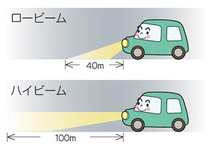 また、ロービームの照射範囲は40m、ハイビームなら100mです。ハイビームのこまめな切り替えにより、危険をより早く発見できます。また、ハイビーム・ロービームをこまめに切り替えることは、意識を運転に集中させ、漫然運転や居眠り運転の防止につながります。ただし、他の車両の交通妨害になるライトの使用は道路交通法違反になる場合があります。先行車や対向車がいるときはロービームにしましょう。