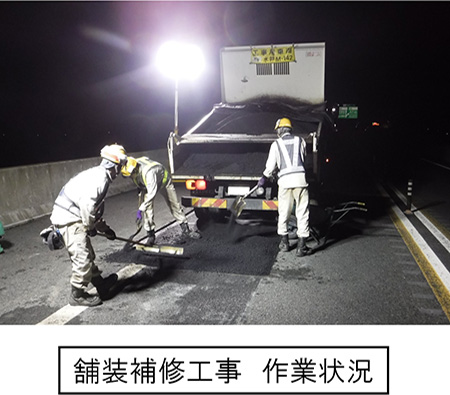 そのため、お客さまへ極力ご迷惑をおかけしないよう、交通量が少ない平日の夜間に通行止めを行い、工事を集中的かつ効率的に実施します。安全・快適に高速道路をご利用いただくために必要な工事ですので、ご理解とご協力をお願いします。