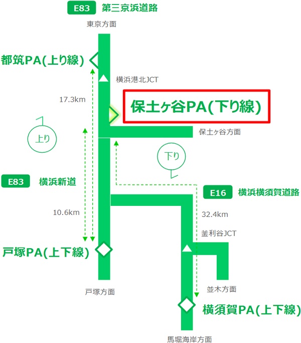 | 所在地 | 第三京浜道路 保土ヶ谷PA(下り線) (神奈川県横浜市羽沢町48) |