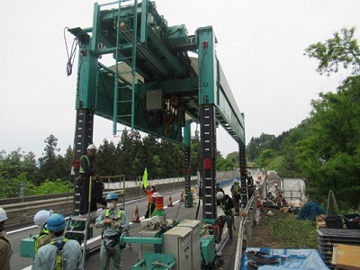 【橋りょうリニューアル工事(2022年春の中曽根川橋上り線施工時の写真)】