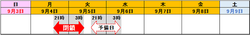 実施日:令和5年9月4日(月)夜21時~翌朝3時予備日:令和5年9月5日(火)夜21時~翌朝3時
