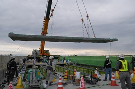 鬼怒川橋の老朽化や大型車の増加等により傷んだコンクリート床版を、より耐久性の高い新しいプレストレストコンクリート床版に取り替えます。また、床版の劣化を防ぐために防水層に高性能な床版防水も実施します。