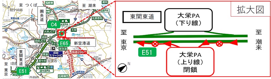 【E51】東関東自動車道 上り線 大栄PA 夜間閉鎖のお知らせ