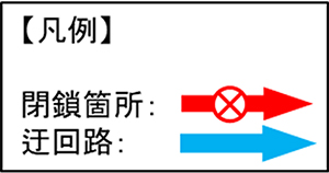 - 閉鎖①の工事が完了した上で、閉鎖②の実施を行いますので、閉鎖①と閉鎖②の同時閉鎖は実施いたしません。