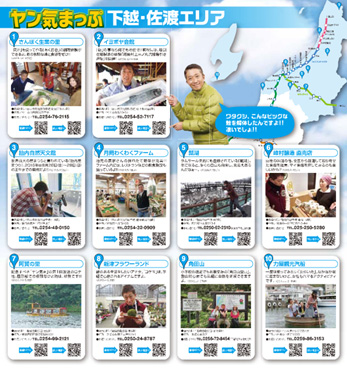 実際に現地に赴き、番組でオンエアされた新潟県内エリア別のおすすめ観光地・グルメ・温泉・アクティビティスポット等を同番組パーソナリティであるヤンさんのコメント付きで紹介。過去の番組を聴くことのできるホームページに直接アクセスできるQRコード※が掲載されており、現地の熱いリポートやアクセスマップ等を見ることができます。